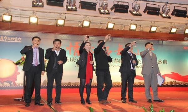 2011年1月16日,我會2011年新春聯誼暨企業風采盛典在天來大酒店國宴廳隆重舉行。重慶市人大常委會黨組副書記、副主任餘遠牧由於公務出差沒能親臨晚會現場,但也親自發來賀電祝賀新年!市政協副秘書長章新渝、江津區副區長張尚毅、重慶市移民局副局長彭亮、重慶中行行長羅小明、重慶市工行副行長邱建華、重慶市光大銀行副行長譚翊武、重慶銀行總行副行長冉海陵、重慶市工商聯黨組副書記、副主席張莉、重慶市工商聯副主席李增等相關主要領導;貴州省江西商會會長方勇軍先生、江西籍遵義市政協副主席李蓮娜女士,仁懷市工商聯副主席徐坤先生一行以及來自上海江西商會的客人專程遠道而來參加我們的晚會;商會會員、各異地商會的朋友以及特邀嘉賓等近400人參加了本次活動。活動以“相識相知、合作共贏”為主題,分為“會員大會”、“簽約儀式”、“新春聯誼會”三個版塊,集中展示了我會2010工作取得的主要成績,得到了與會人員的盛讚。