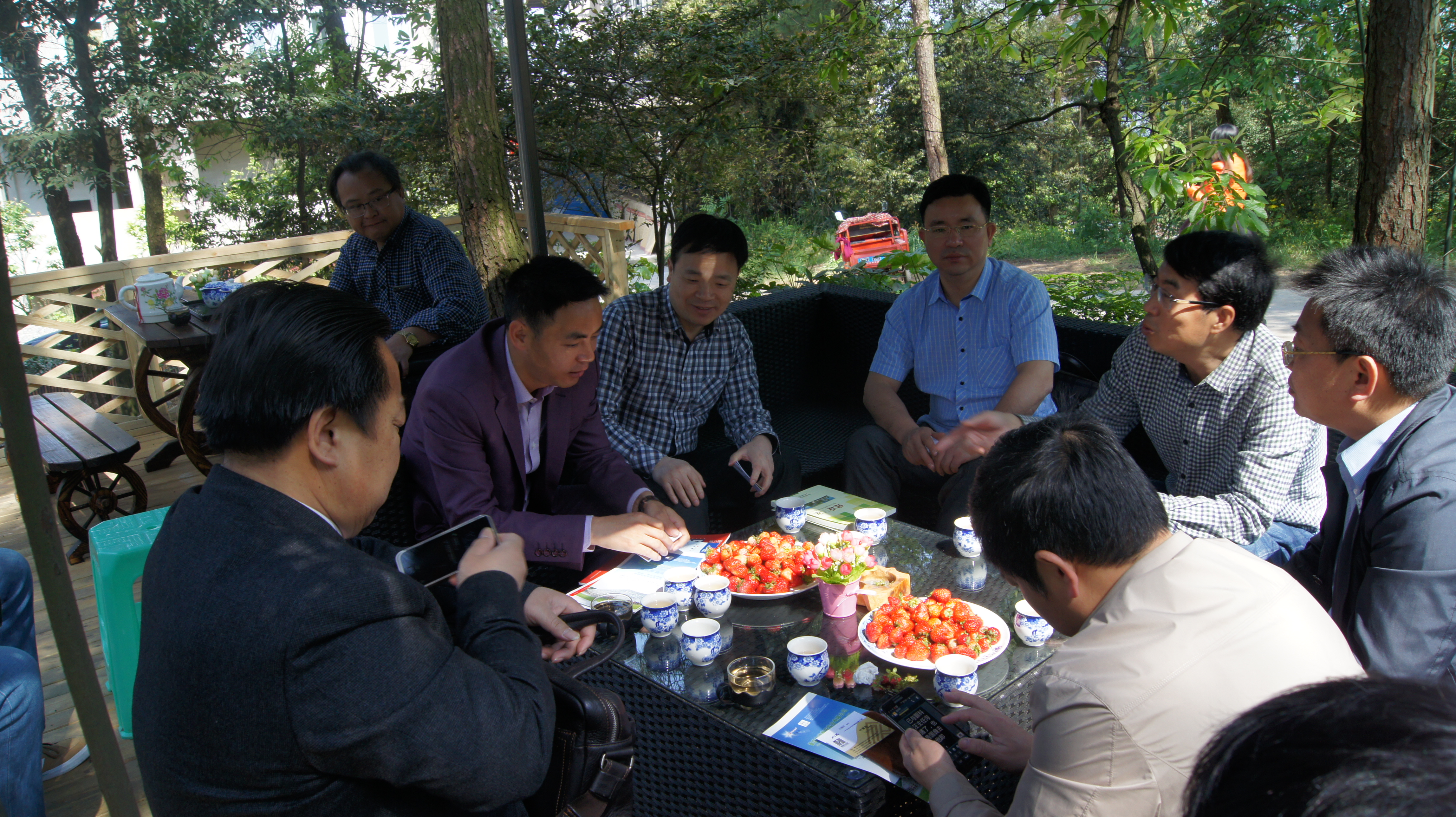 13日上午, 考察團一行前往我會名譽會長羅來安公司——中zhong瑞rui鑫xin安an實shi業ye有you限xian公gong司si位wei於yu渝yu北bei區qu鐵tie山shan坪ping森sen林lin公gong園yuan內nei的de江jiang西xi森sen林lin會hui館guan項xiang目mu參can觀guan考kao察cha。羅luo會hui長chang與yu輪lun值zhi會hui長chang付fu建jian忠zhong熱re情qing接jie待dai了le考kao察cha團tuan一yi行xing。洪hong主zhu席xi對dui羅luo會hui長chang公gong司si打da造zao研yan發fa的de“低碳集成房屋”、“房車營地”給予了高度評價,並表示期待能有更多諸如羅會長、付會長一樣優秀的贛商回鄉投資。