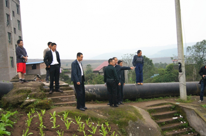 我會領導陪同江西省商務廳王副巡視員一行以及石柱縣有關領導前往西沱鎮考察對口援建項目老虎洞人行梯道